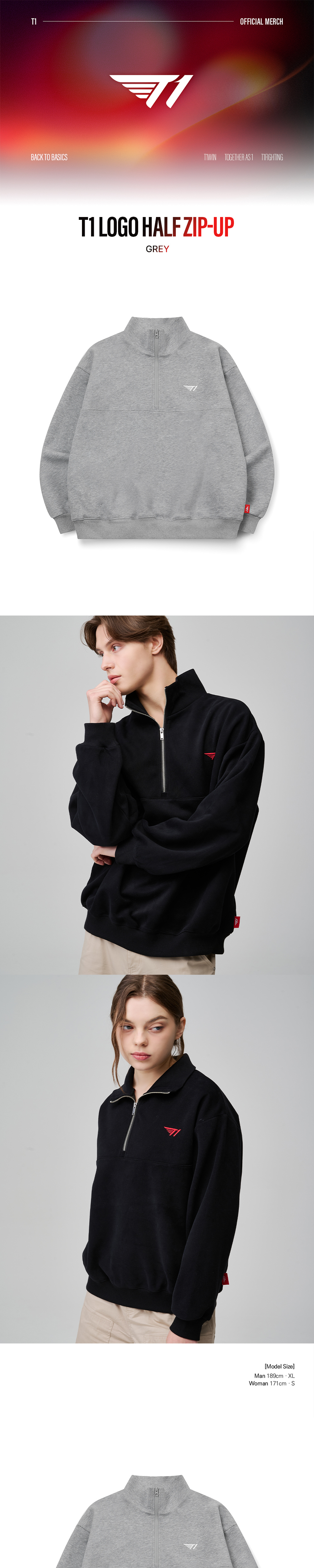T1 Logo Half Zip-up - Grey