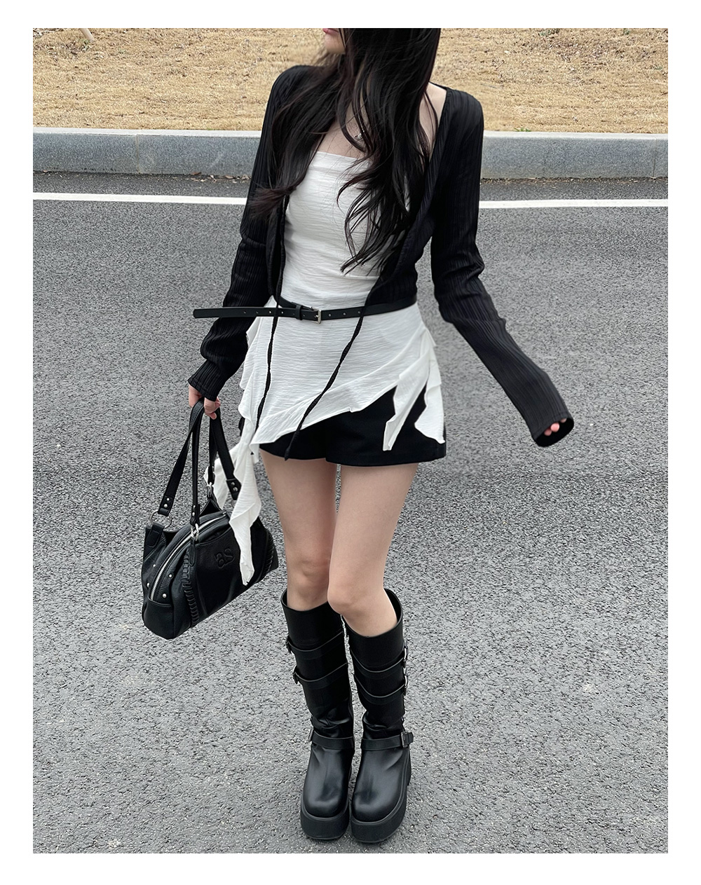 不對稱下擺搭配荷葉邊設計~