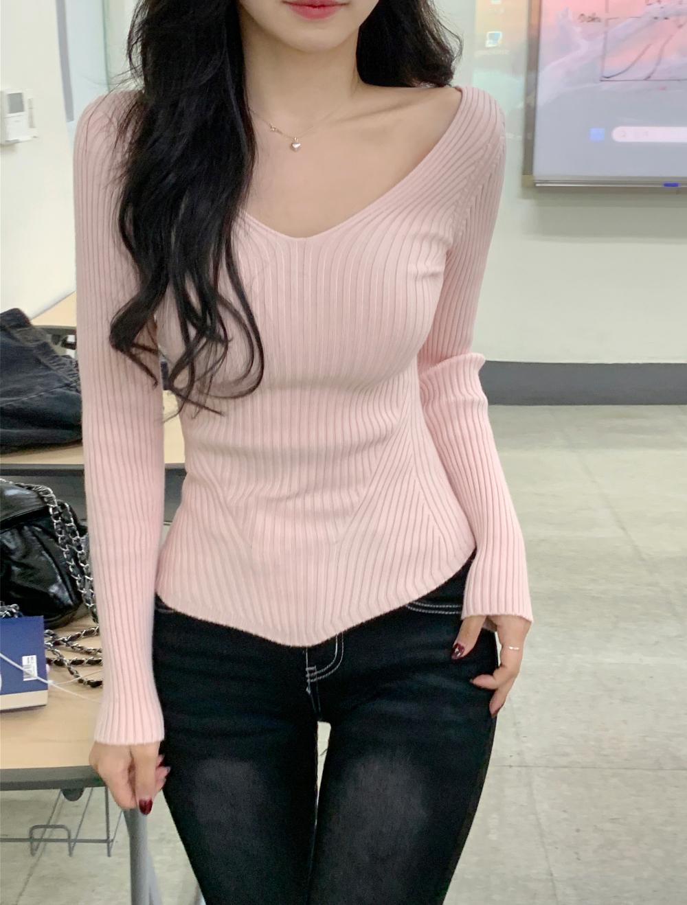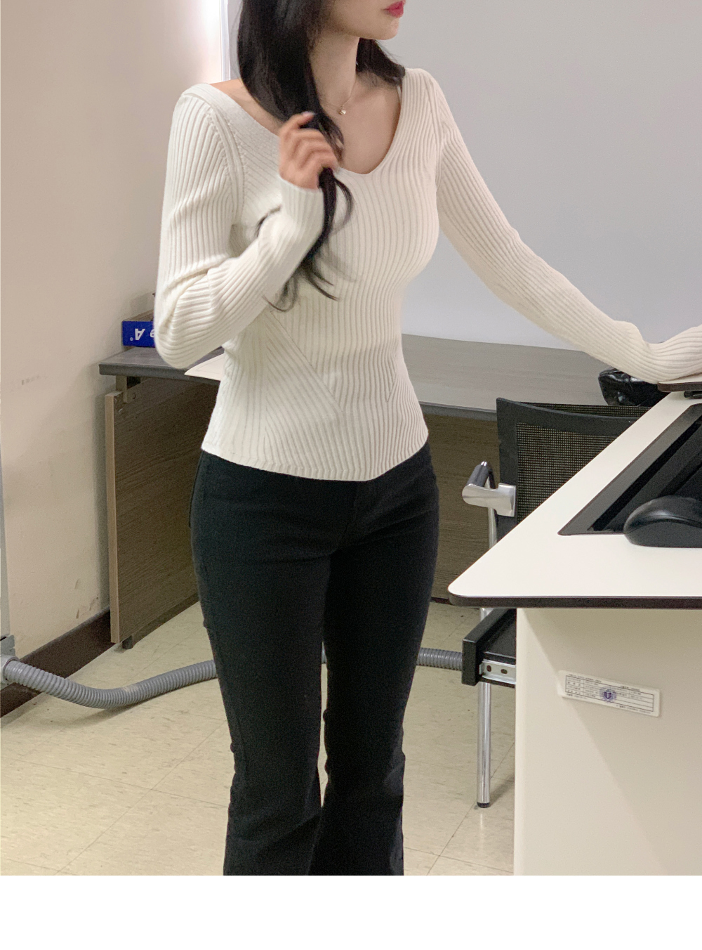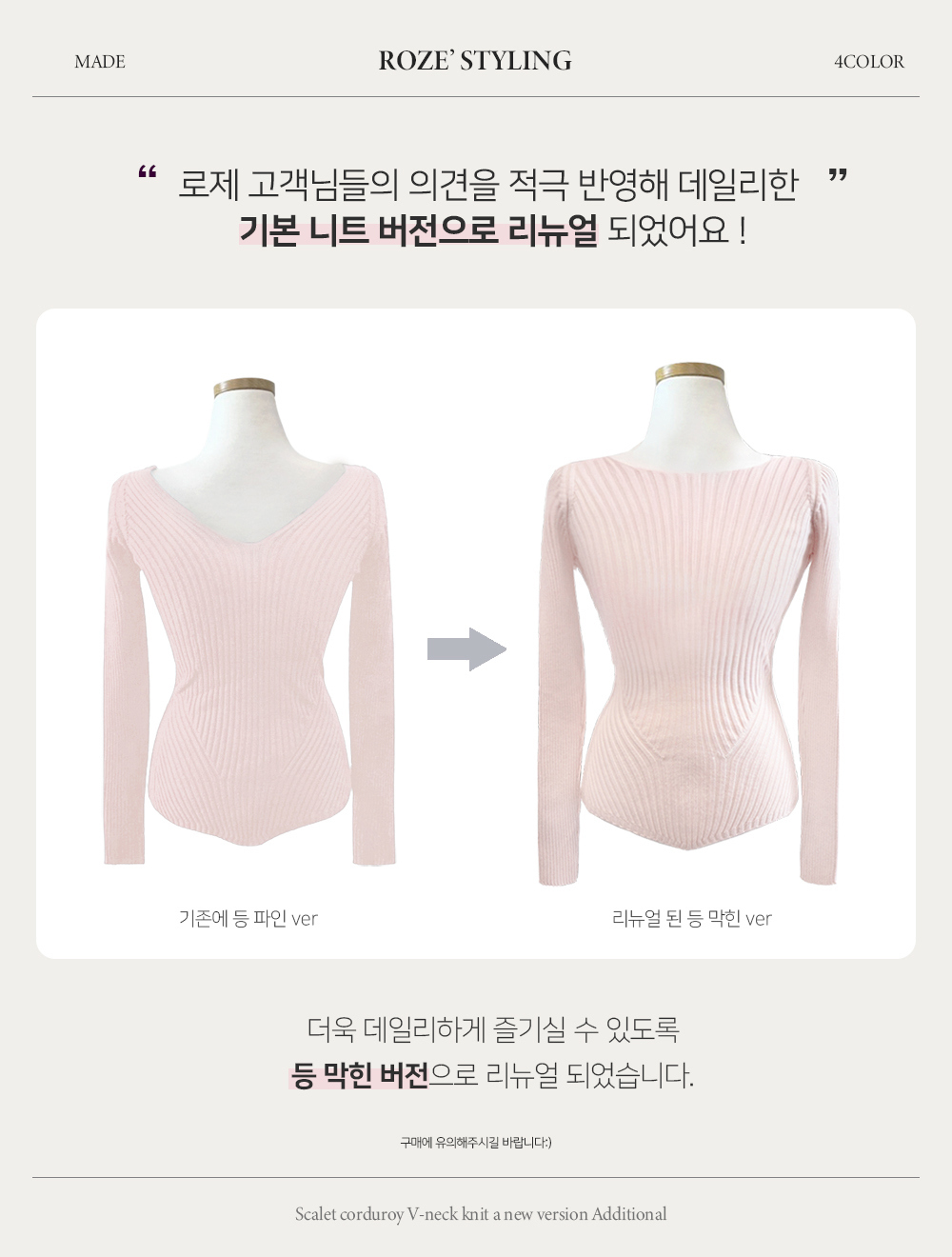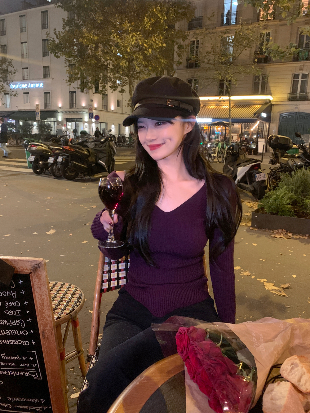 【簡約小性感】 Scarlet羅紋V領針織上衣 (4色) (TP187)