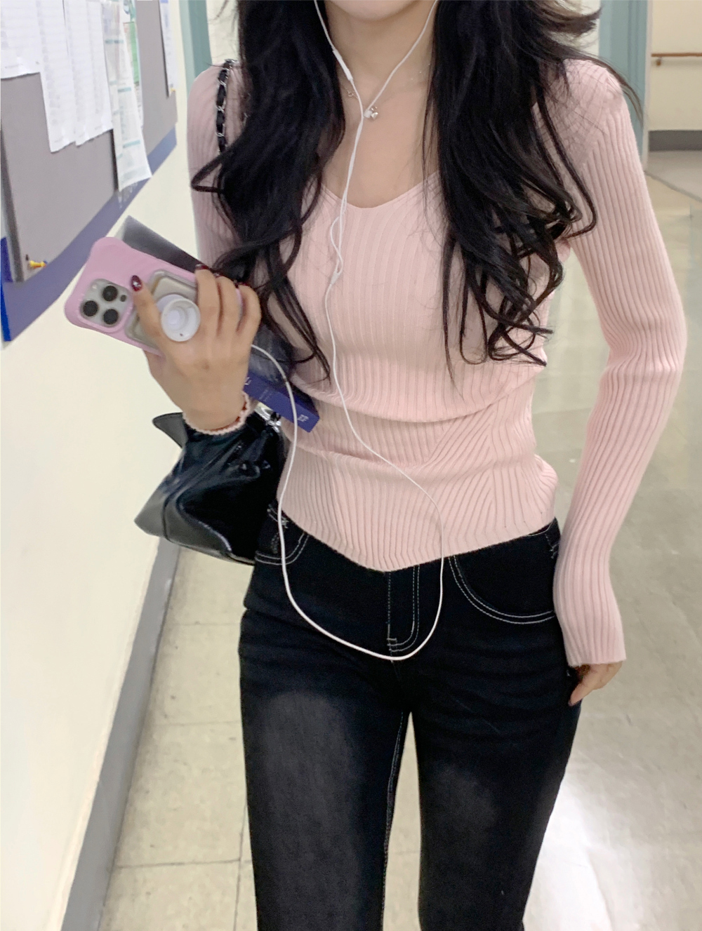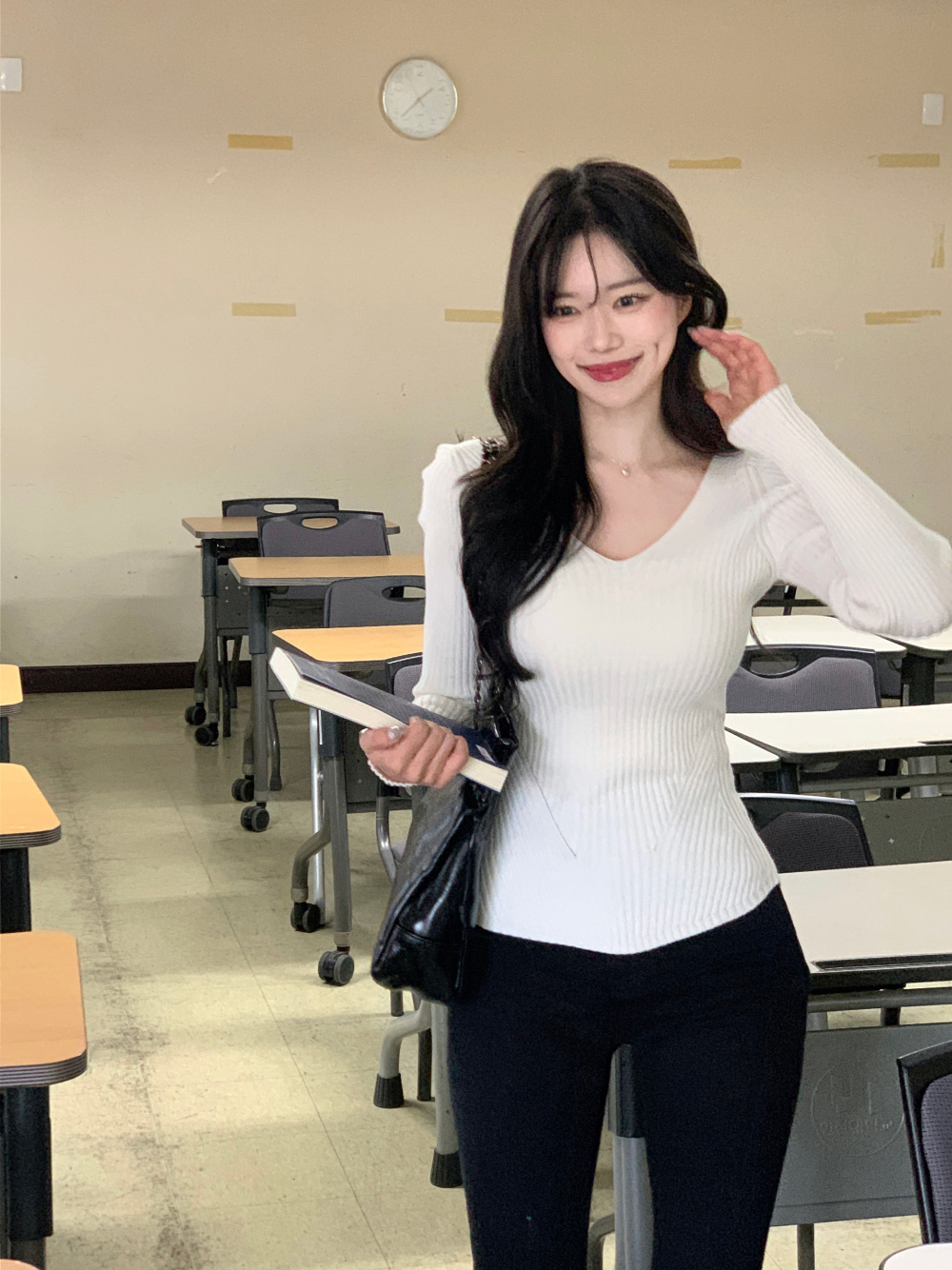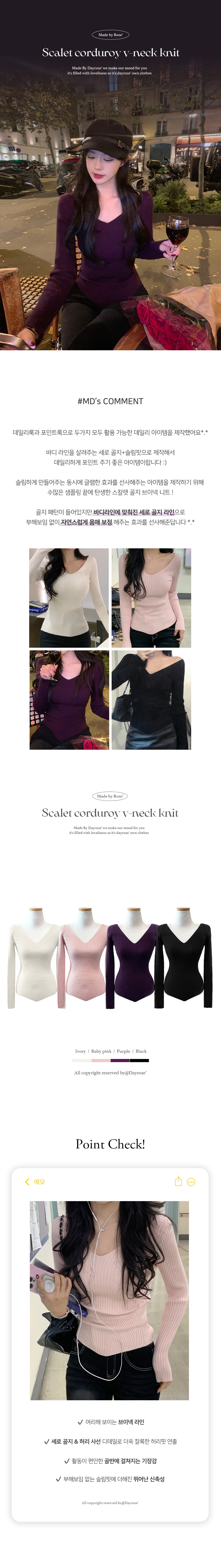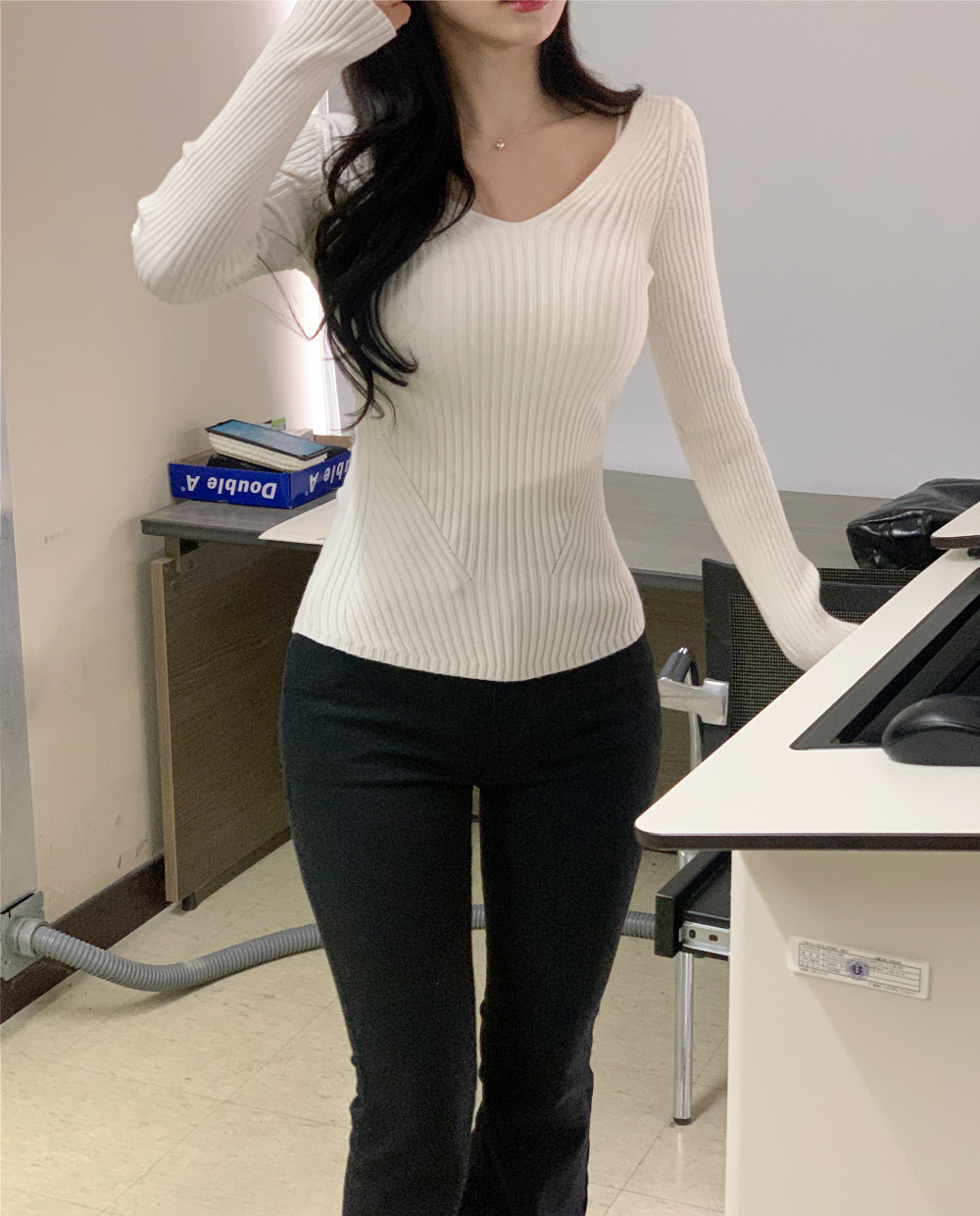 【簡約小性感】 Scarlet羅紋V領針織上衣 (4色) (TP187)