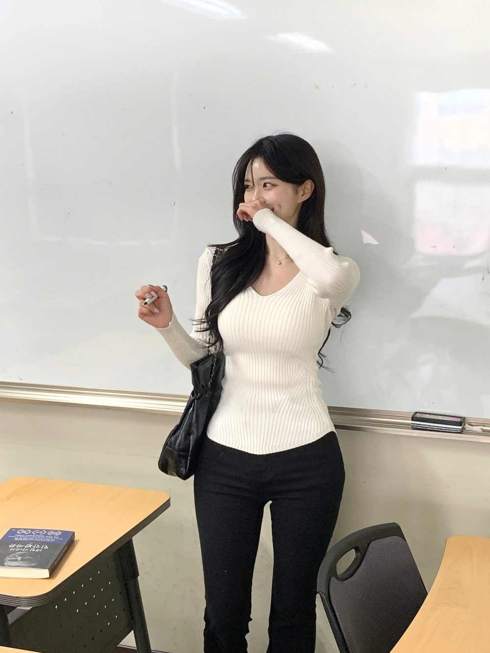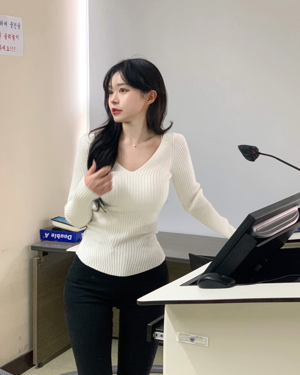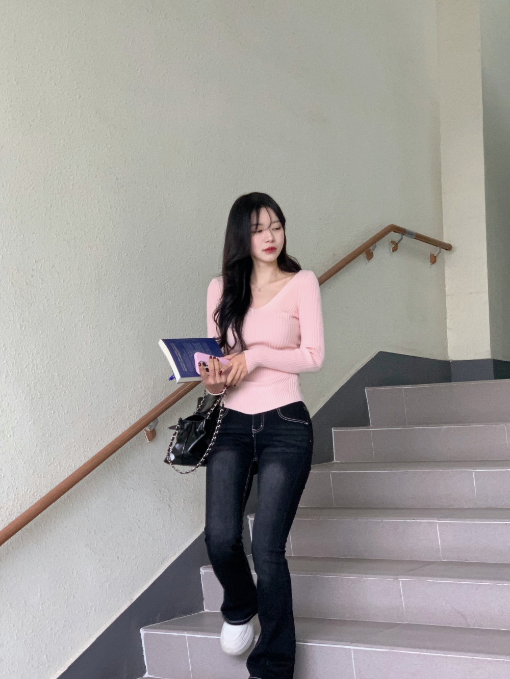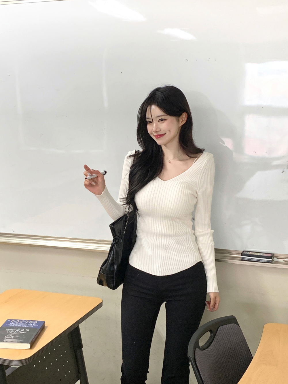 【簡約小性感】 Scarlet羅紋V領針織上衣 (4色) (TP187)