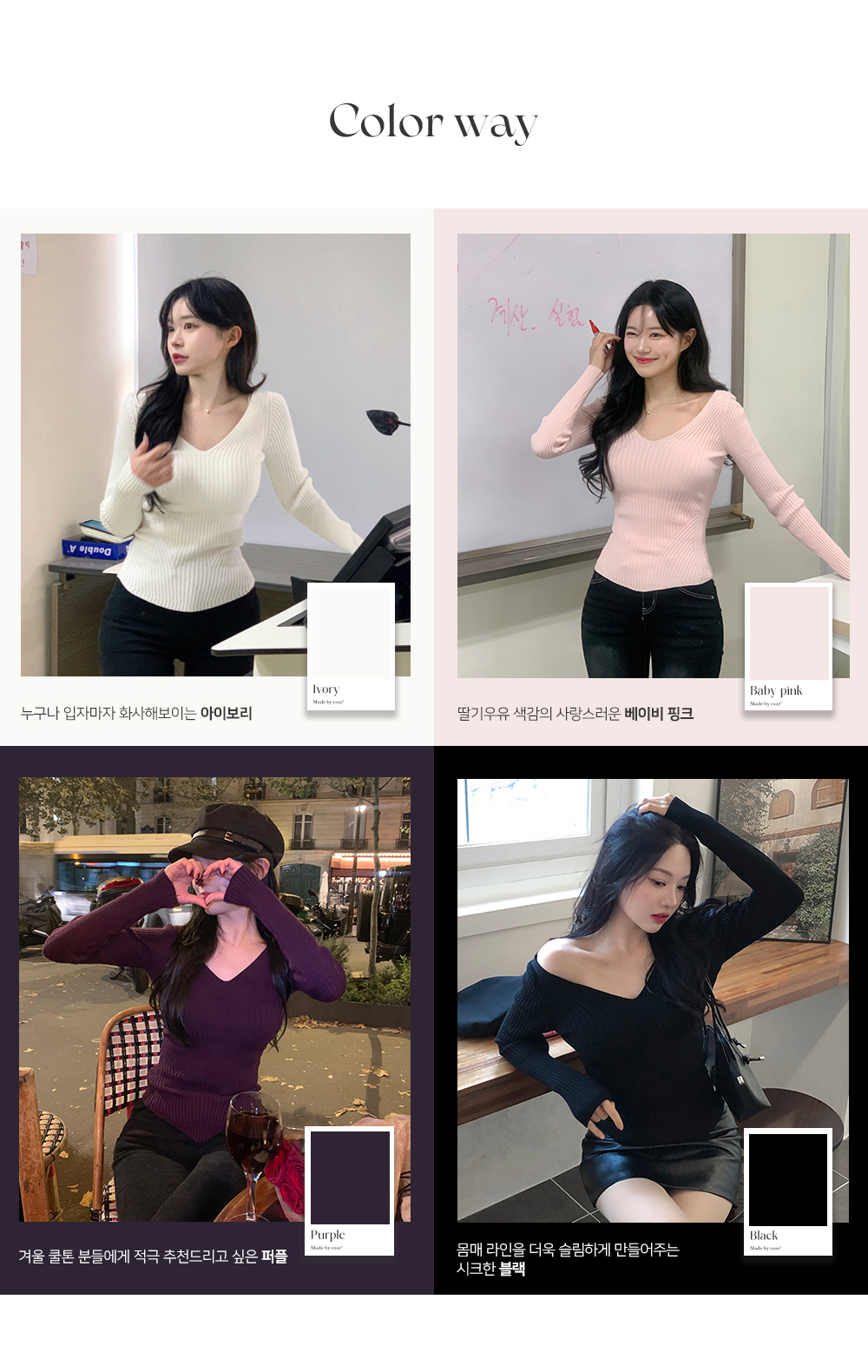 Ivory 象牙白 🤍 · Baby Pink 淺粉色 🌸 · Purple 紫色 💜 · Black 黑色 ⚫