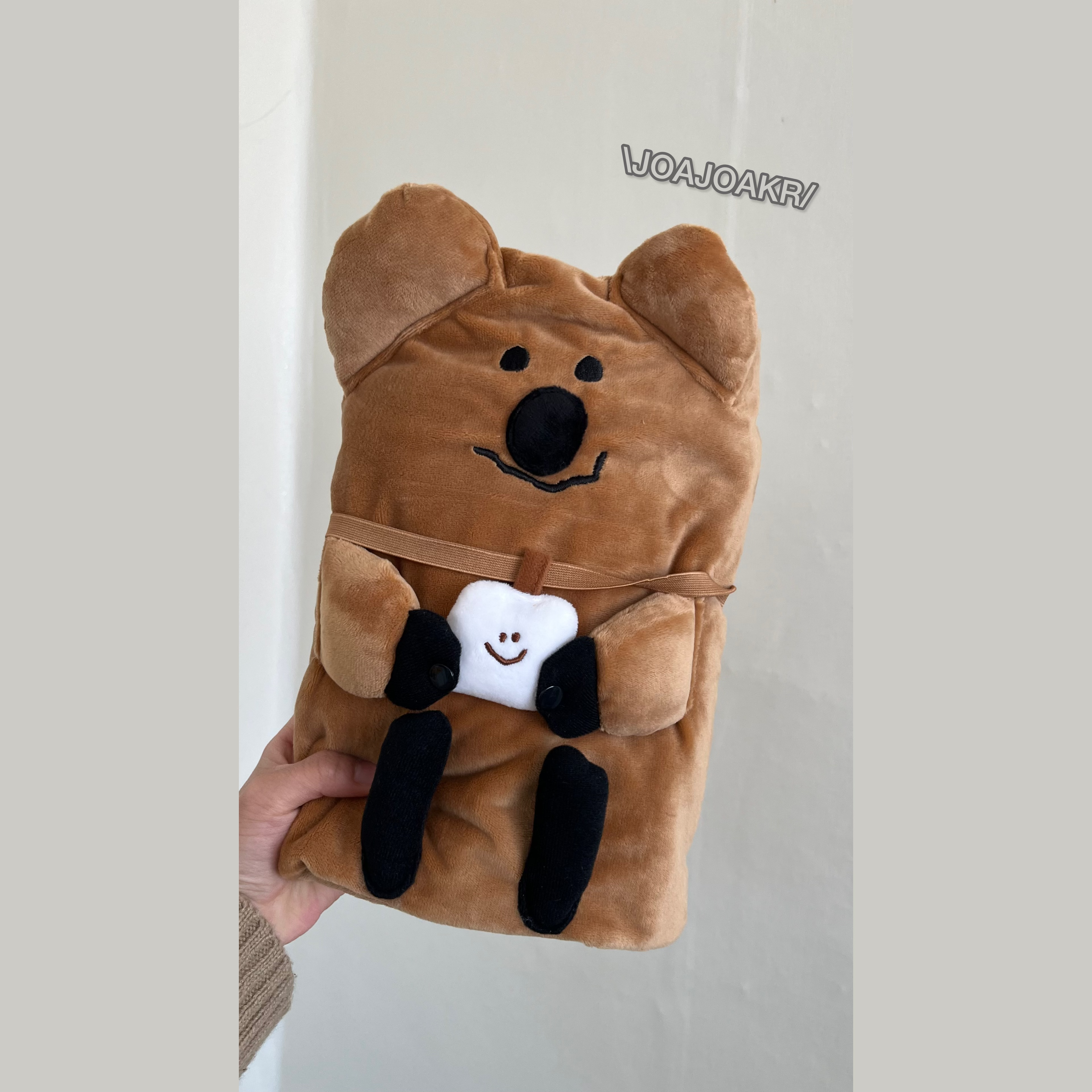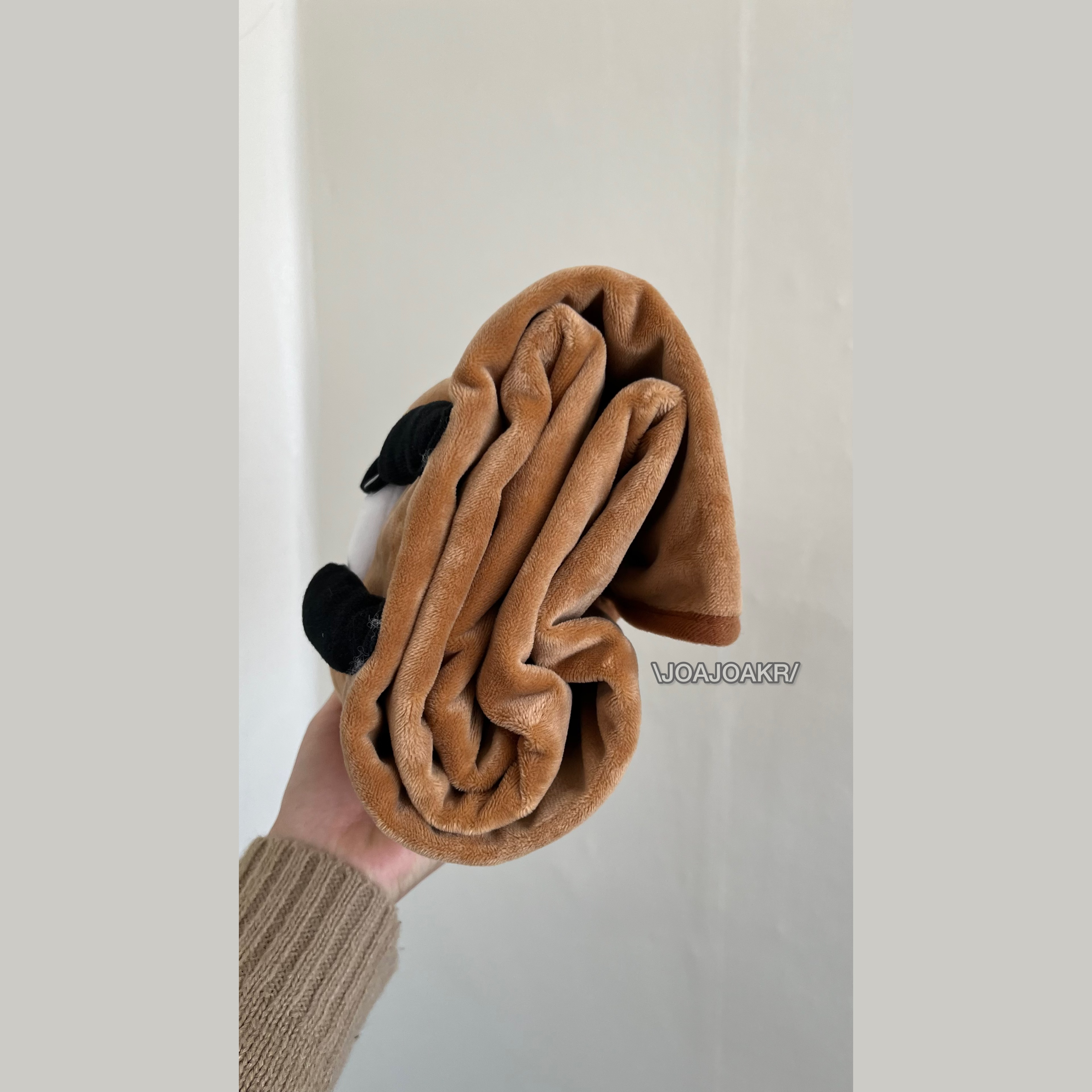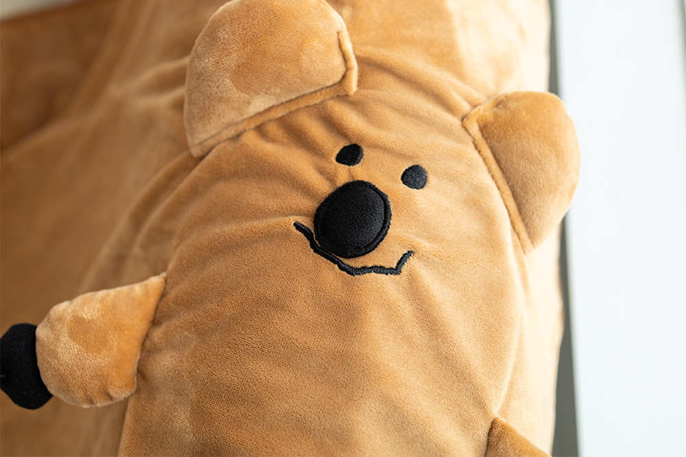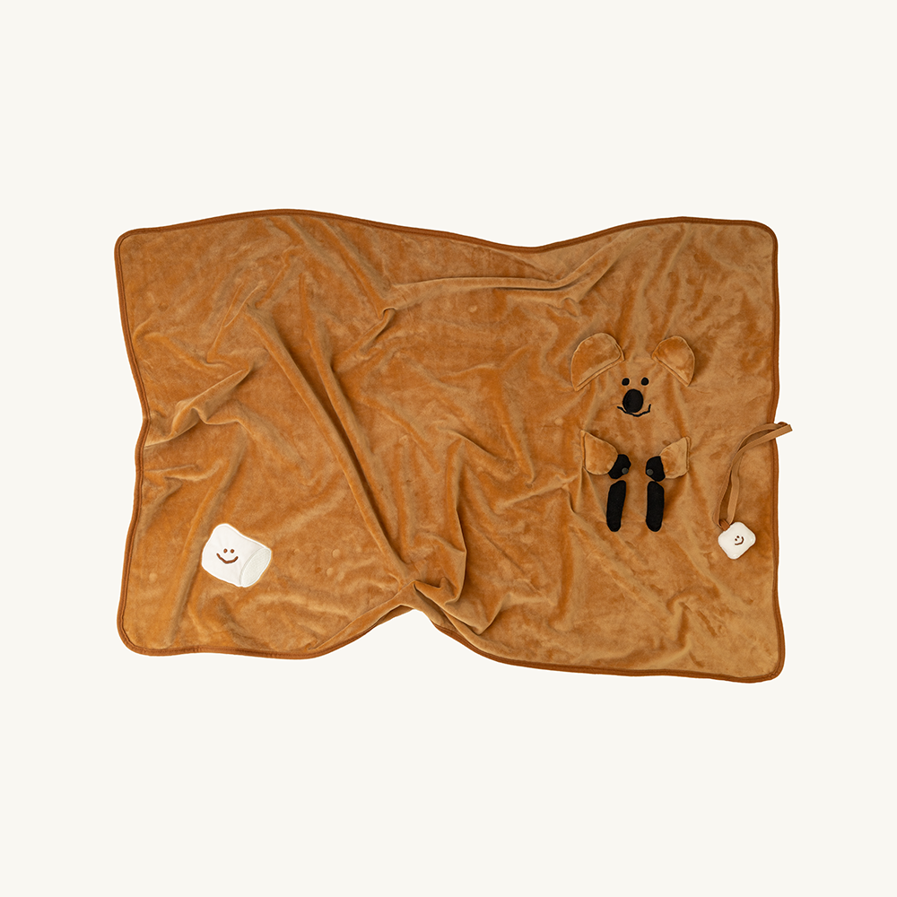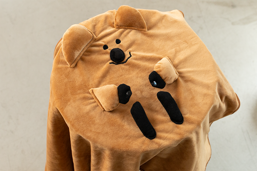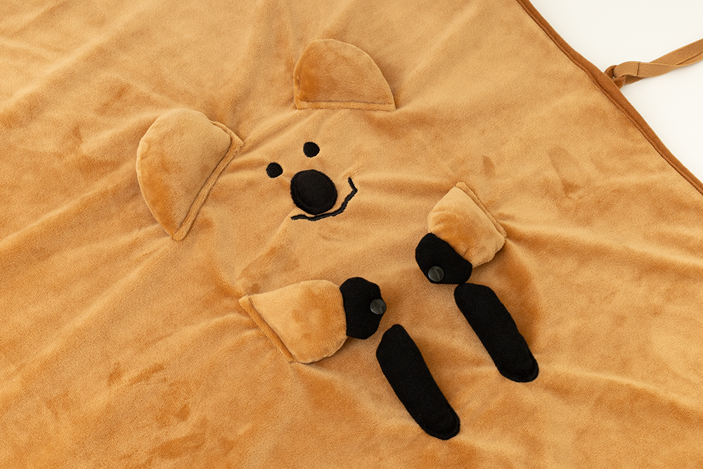 不使用毛毯時,將Quokka的臉摺疊到中間